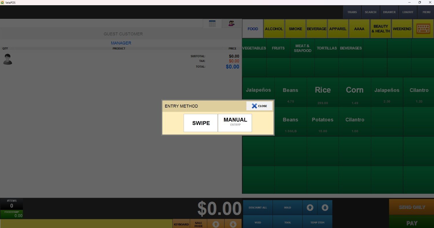 SWIPE: The customer swipes their physical EBT card using the card reader.
