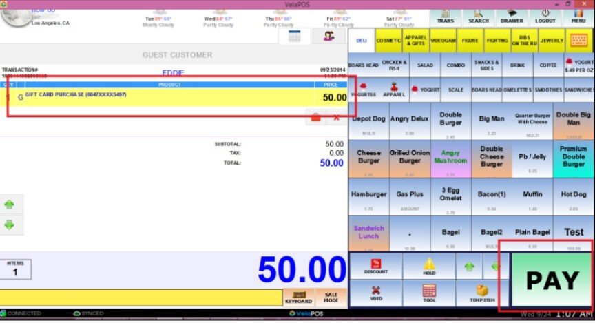 Purchase: Sell a new gift card to a customer.