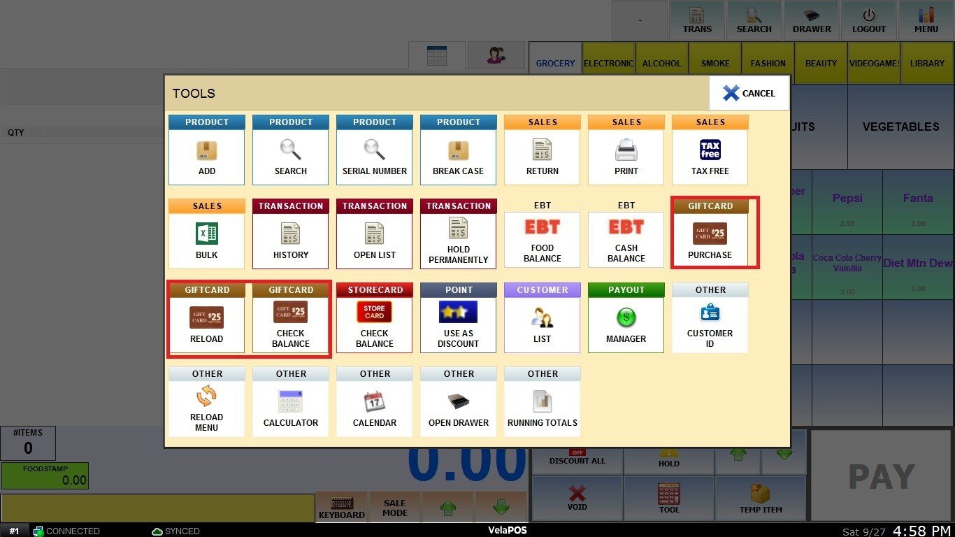 The Giftcard Tools allows you to manage gift cards by adding funds, checking available balances and selling new ones.
