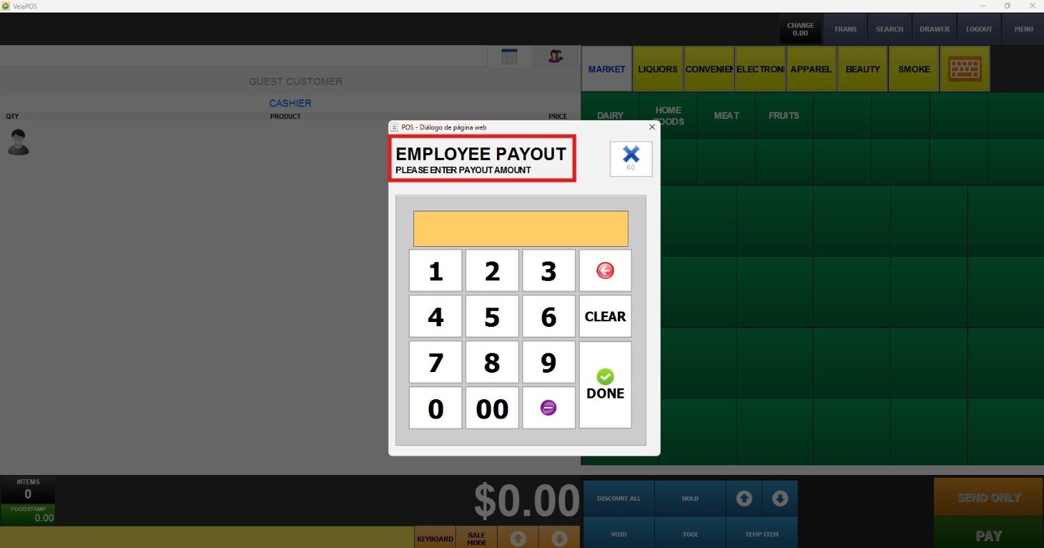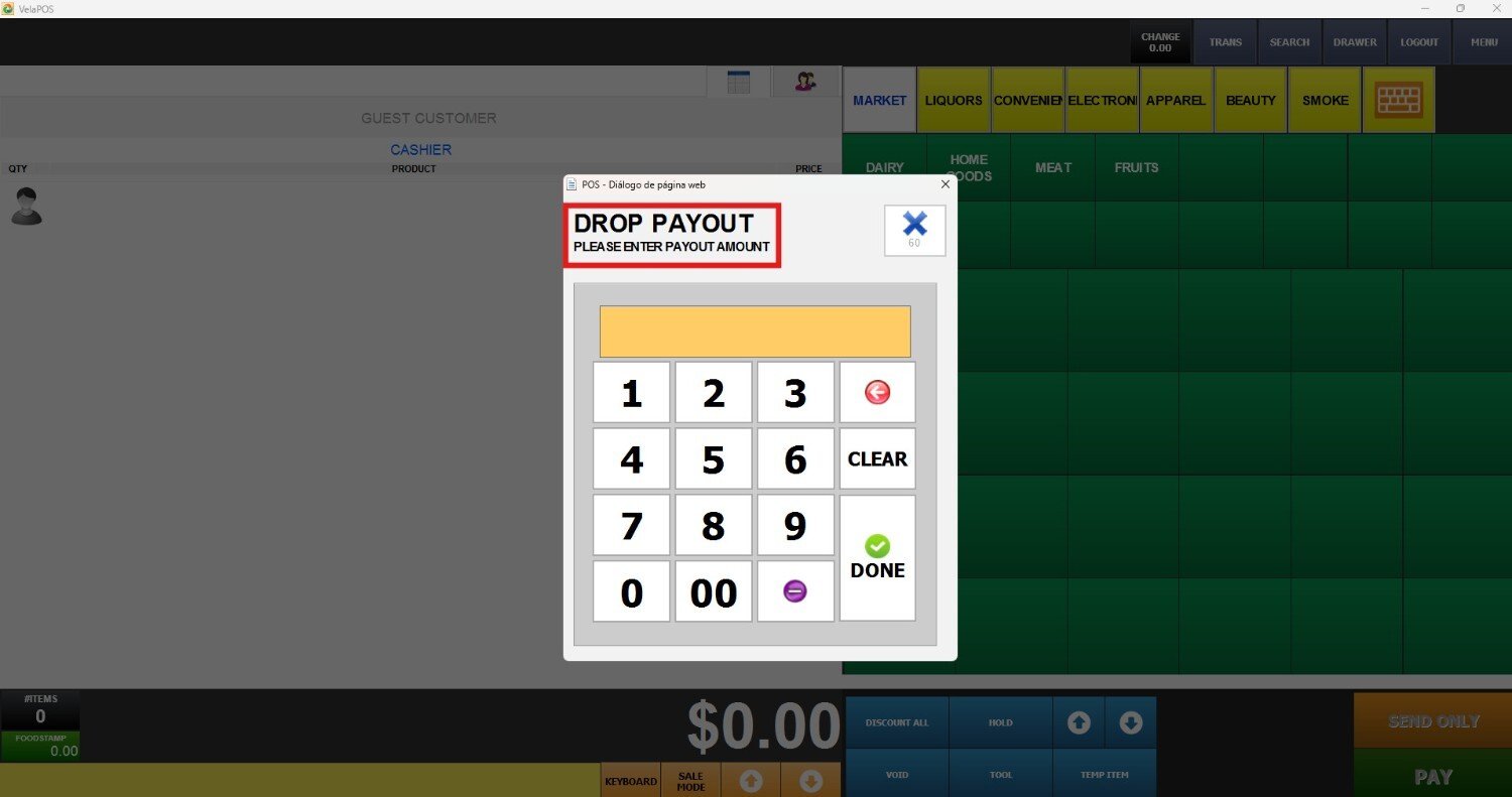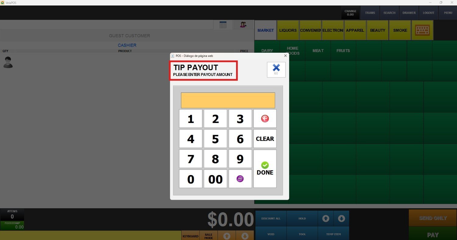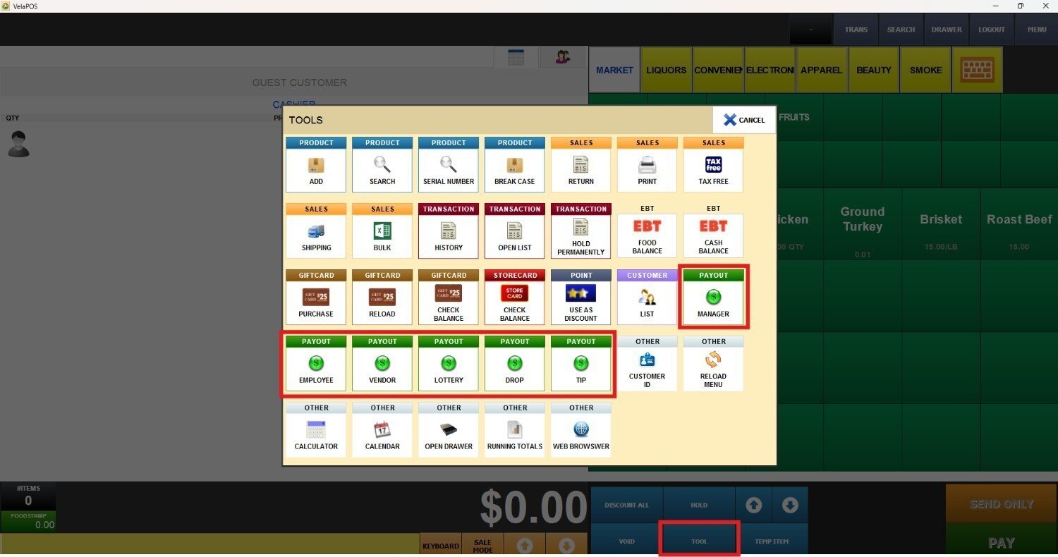 The Payout tool allows you to record and manage different types of cash extractions from the register.