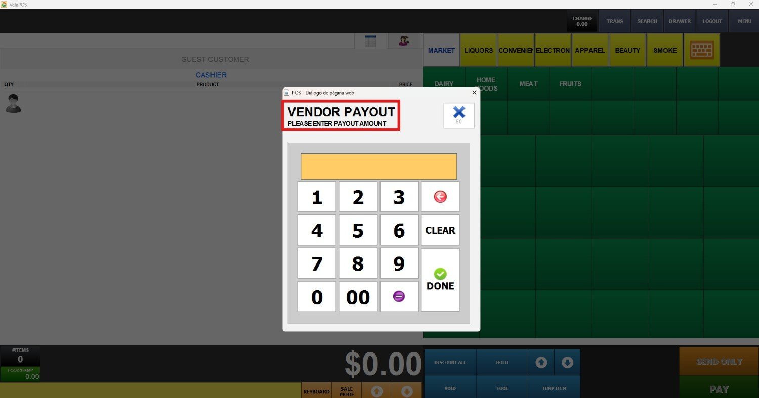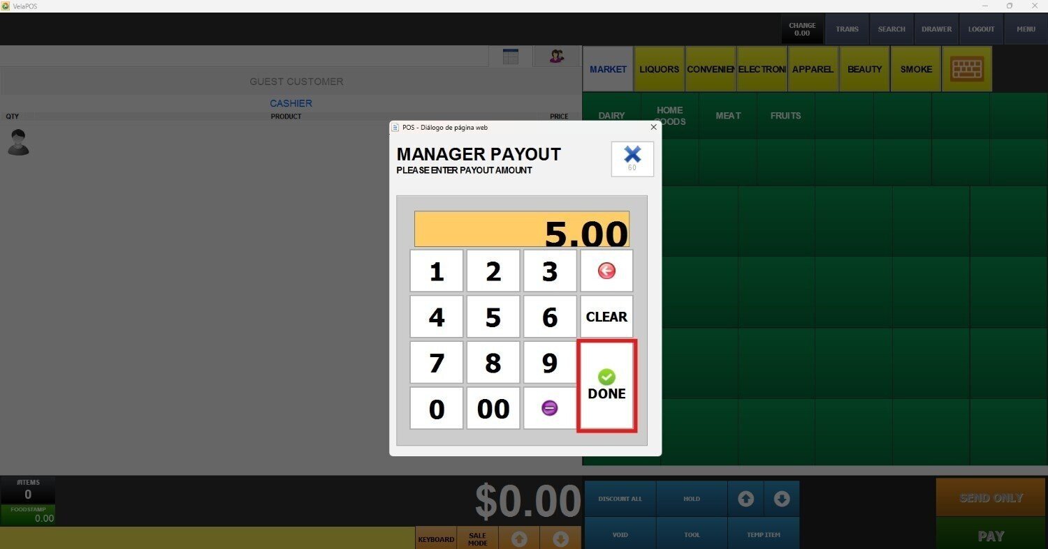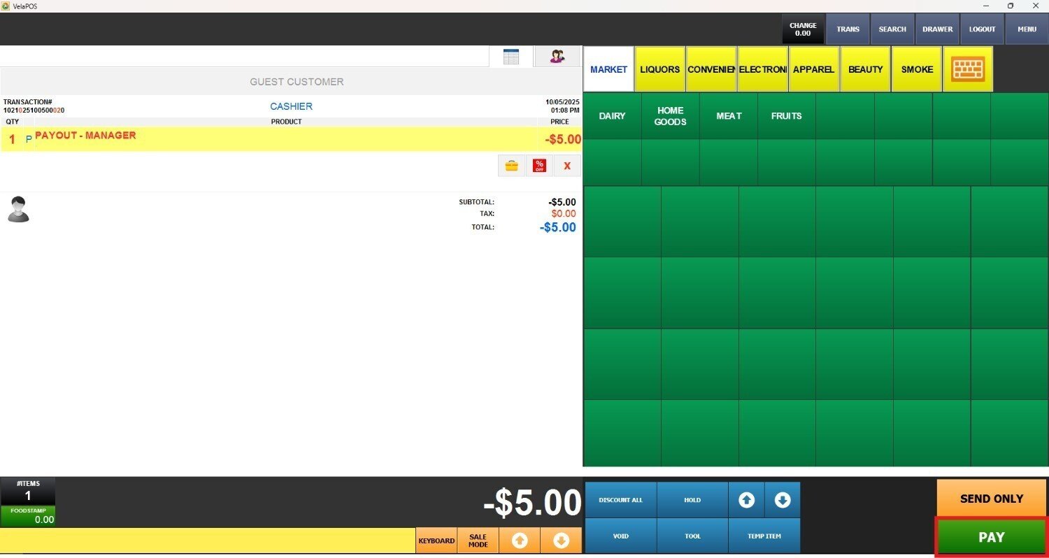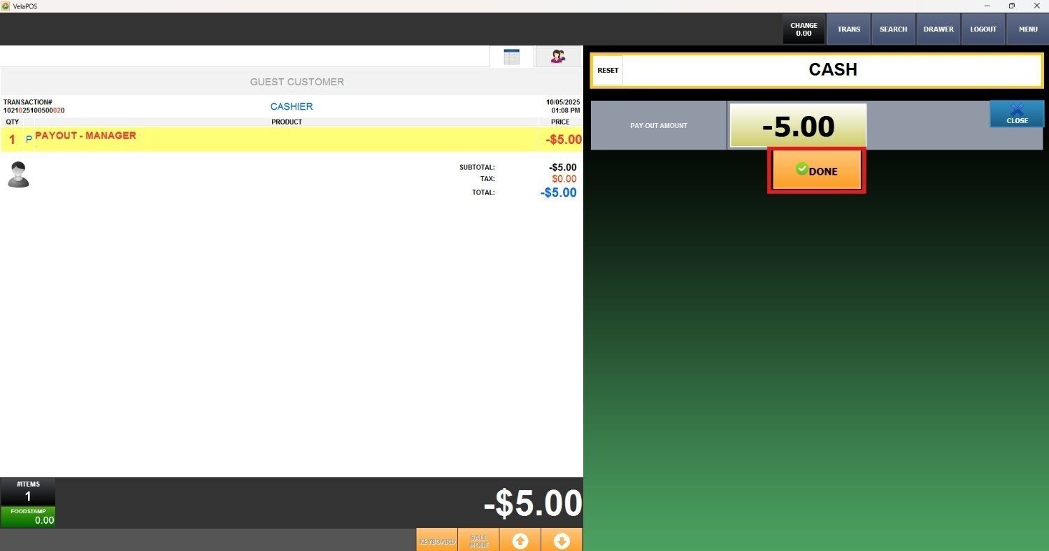 The Payout tool allows you to record and manage different types of cash extractions from the register.