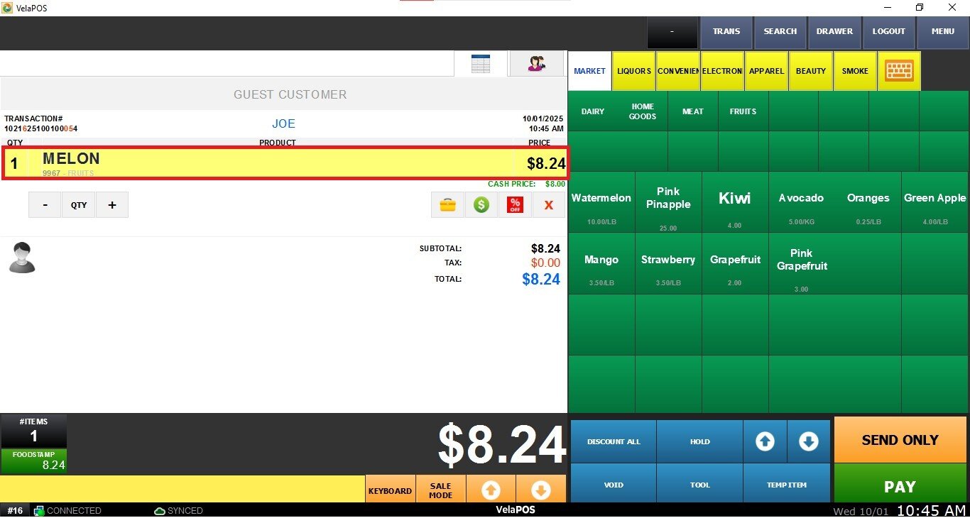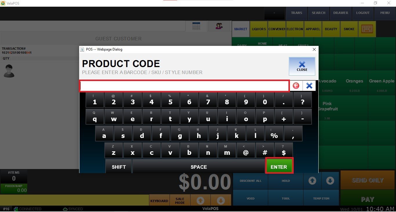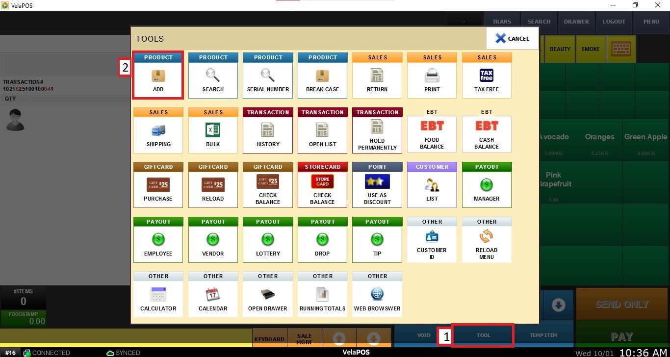 Note: The product will be saved in the inventory list, in order to set it to be displayed as well on the sales screen, see Menu Product Tab.