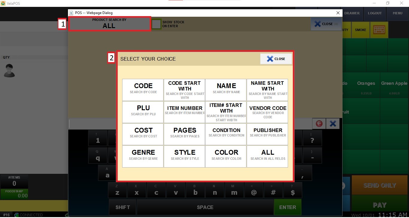 This tool allows you to search through your complete inventory directly from the sales screen.