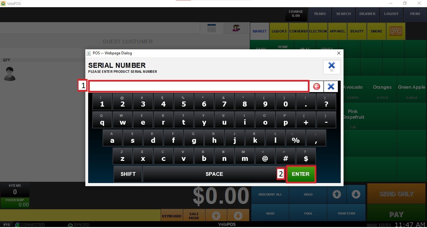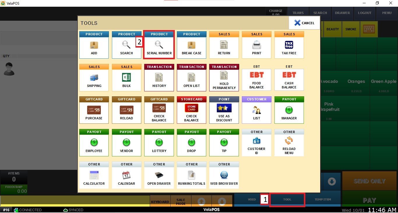 Number Pad> Sales screen> TOOL> SERIAL NUMBER