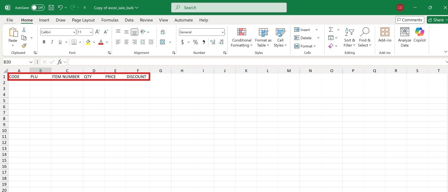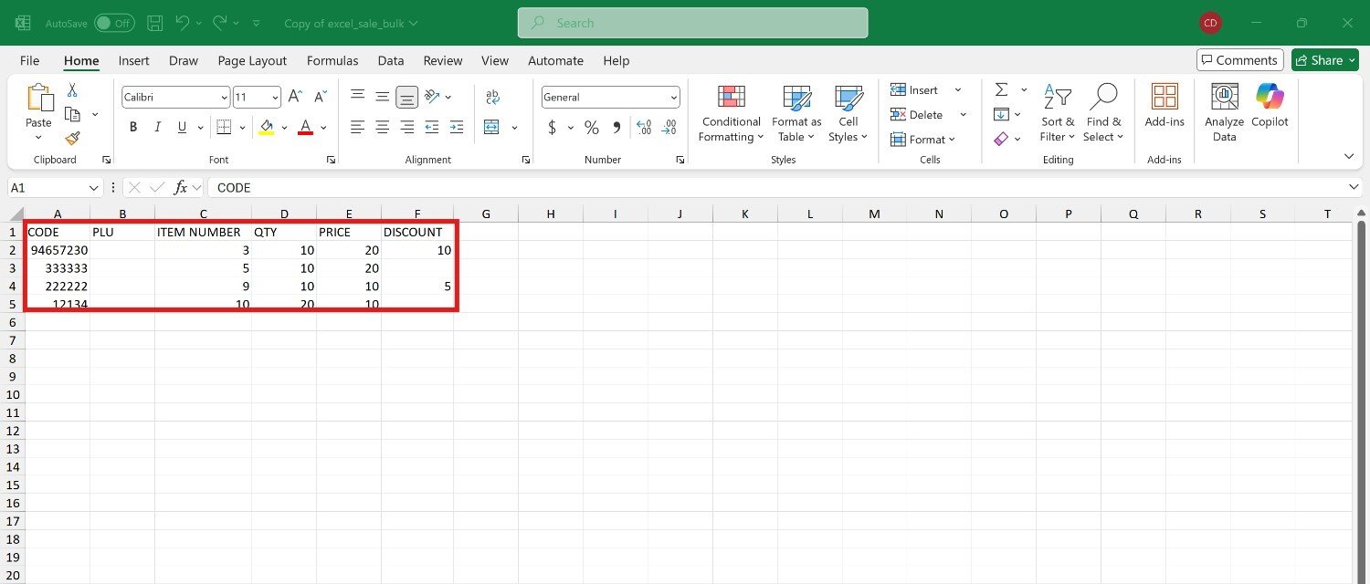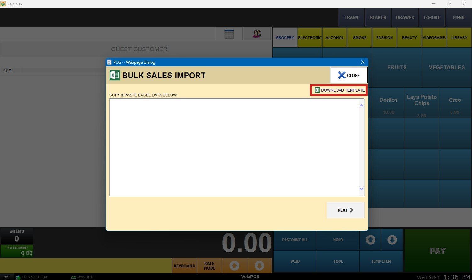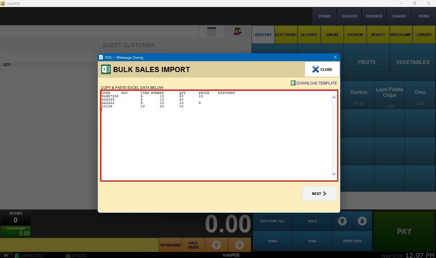 Paste the copied information into the BULK SALES IMPORT blank space.