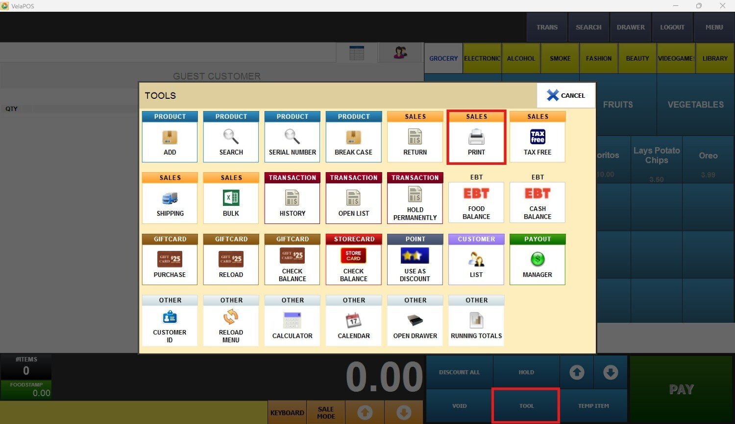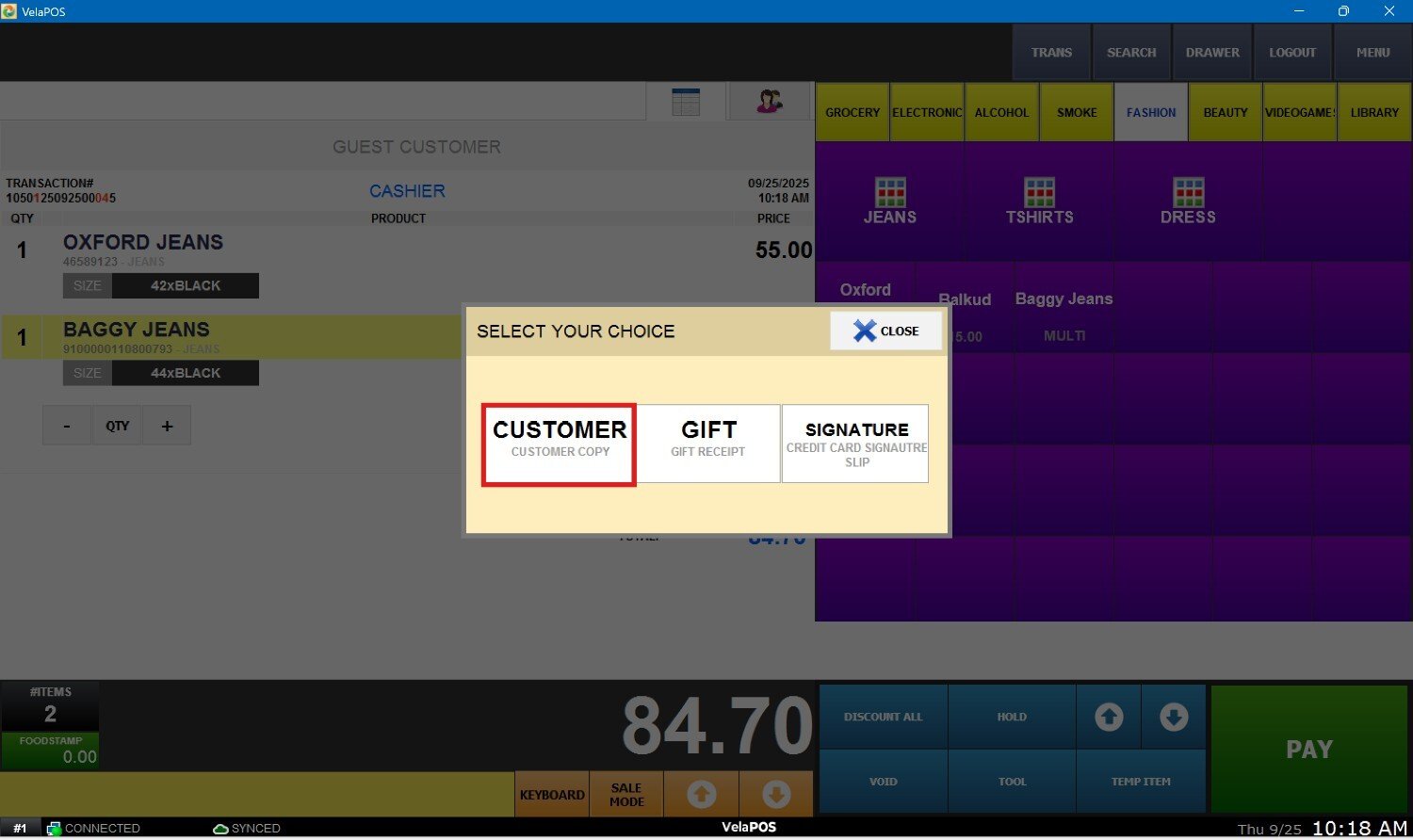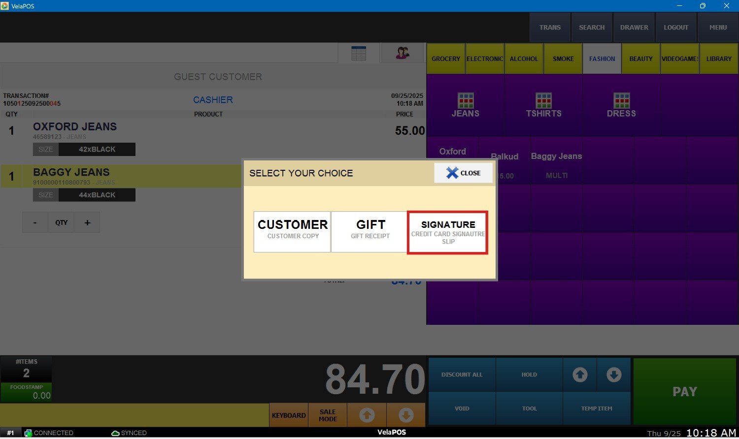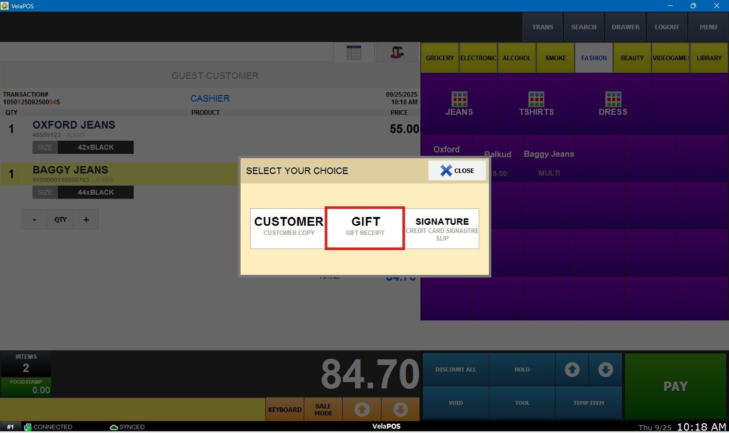 This tool, during a sale, prompts the system to ask which type of receipt to print, depending on the customer's needs: CUSTOMER, GIFT, SIGNATURE.