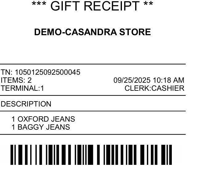 This receipt excludes prices, which is suitable for gifts while still allowing the item to be returned.