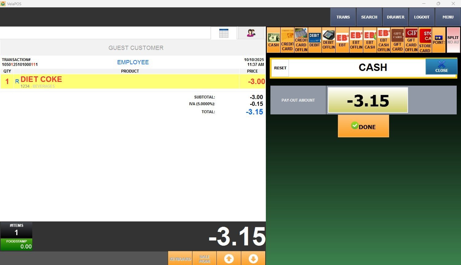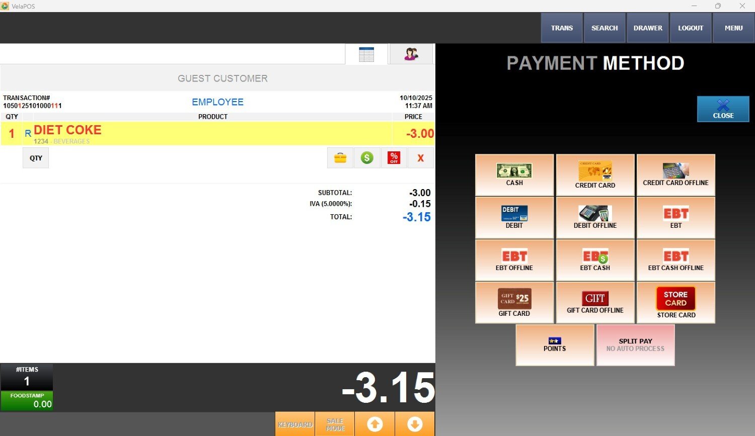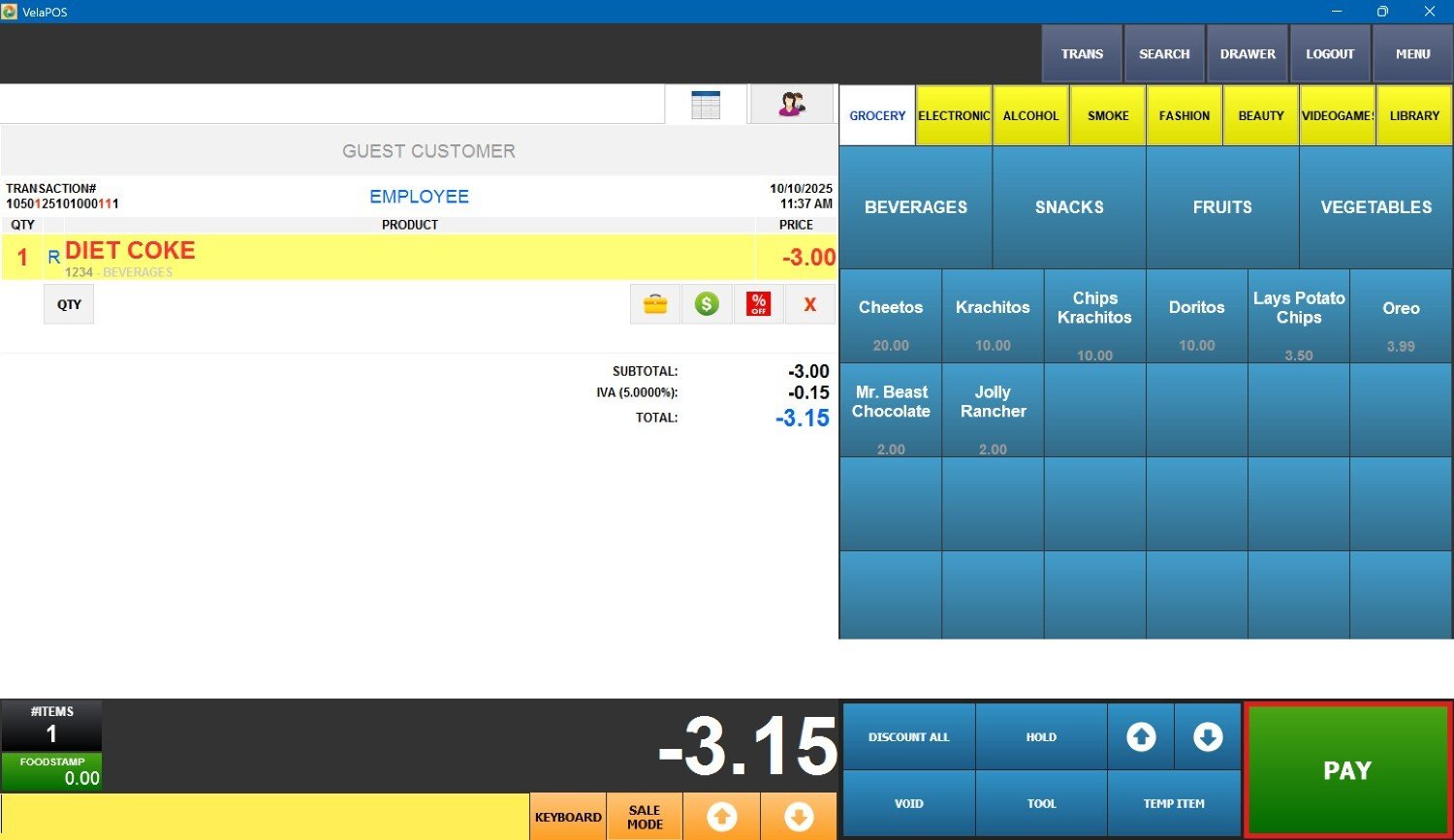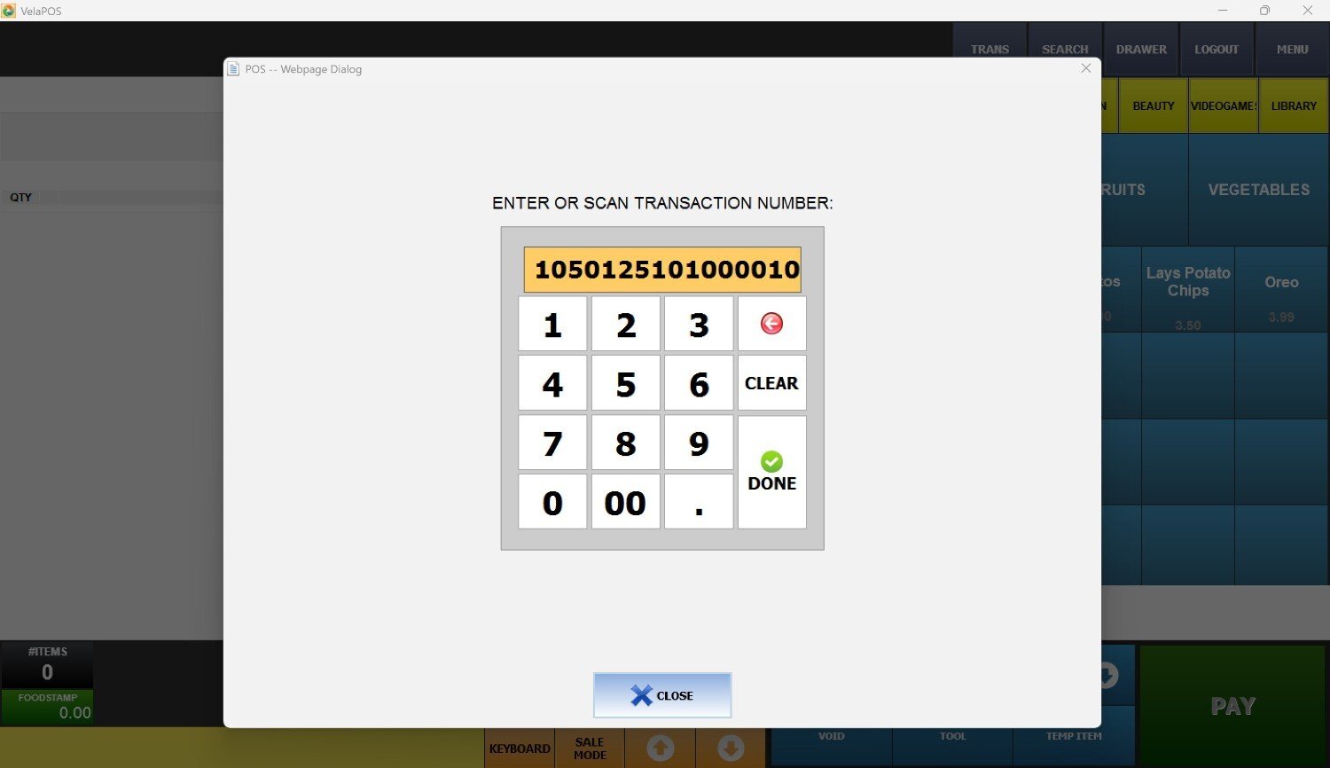 Once the item/s appear on the ticket, press PAY to continue.