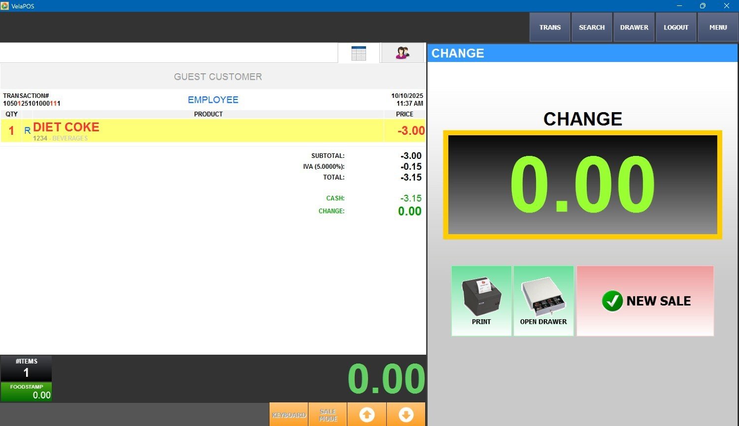 Number Pad> Sales screen> TOOL> RETURN