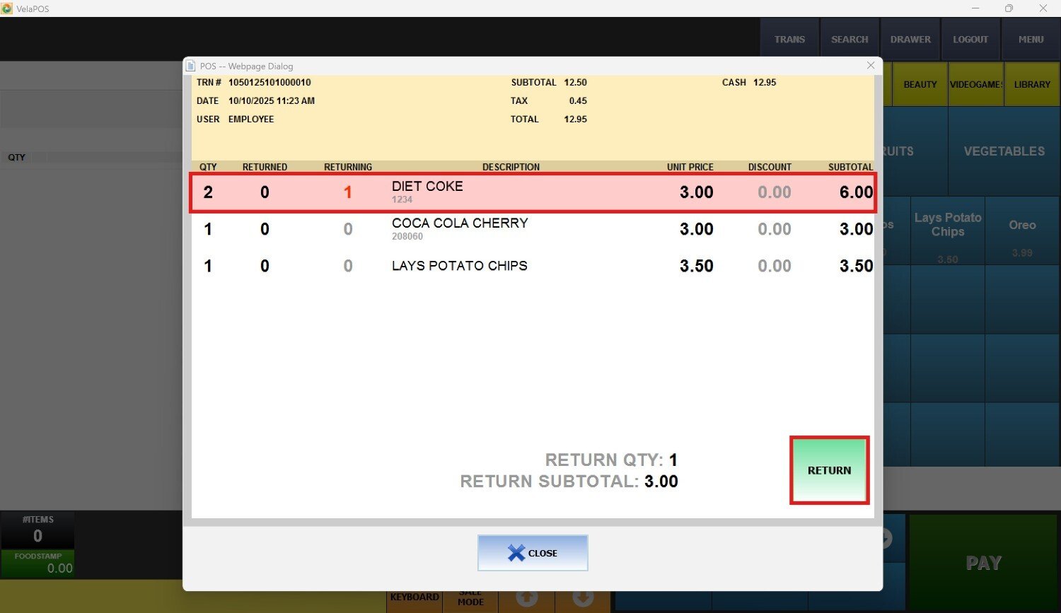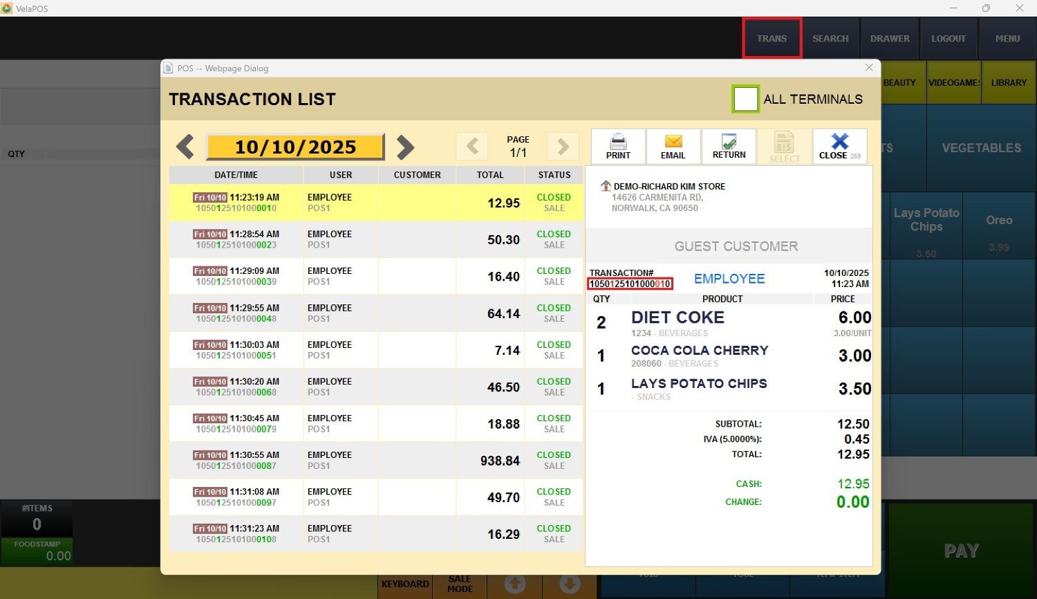 1. Go to TRANS to locate and choose the transaction that includes the item/s to be returned: