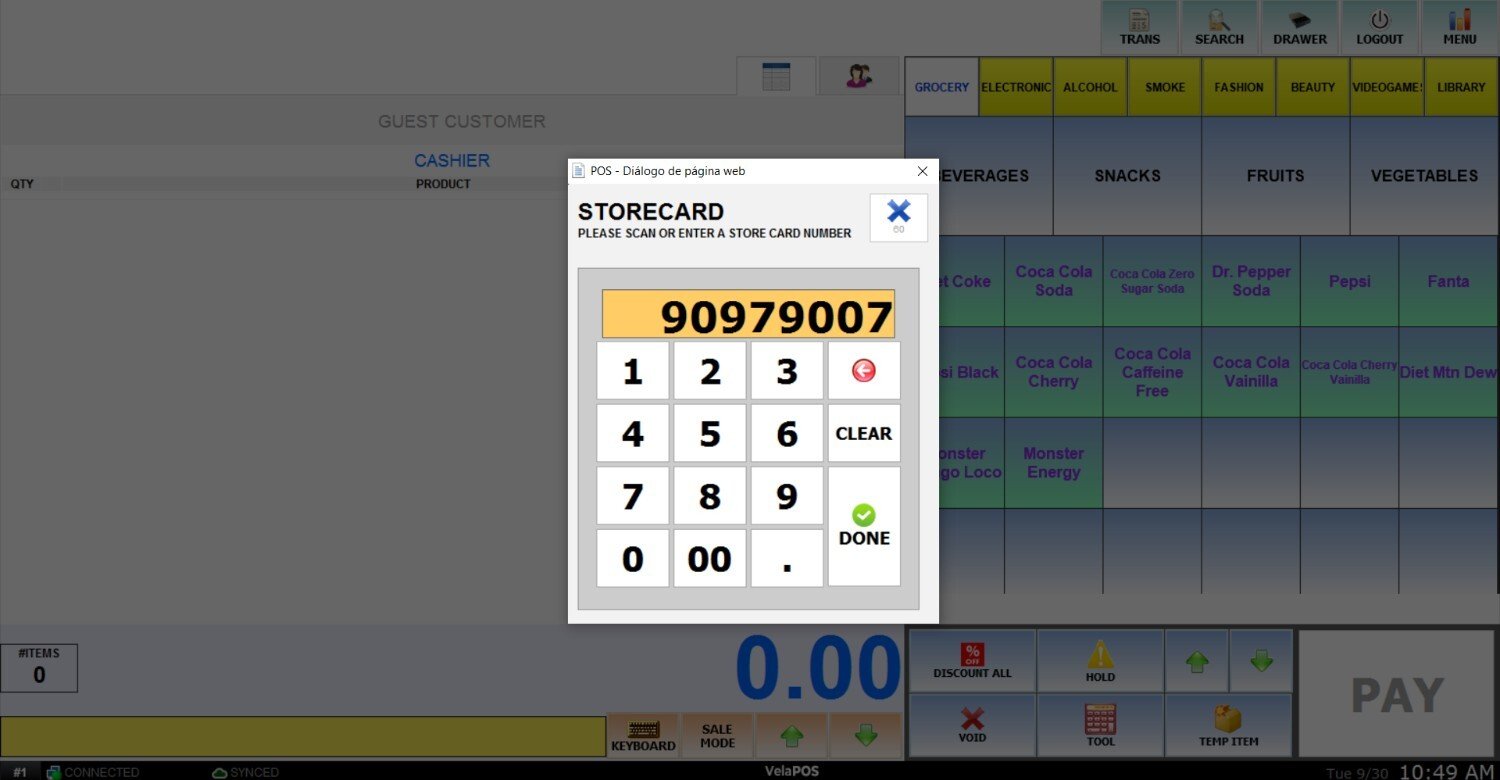 A number pad will be displayed at the screen, scan or enter the storecard number.