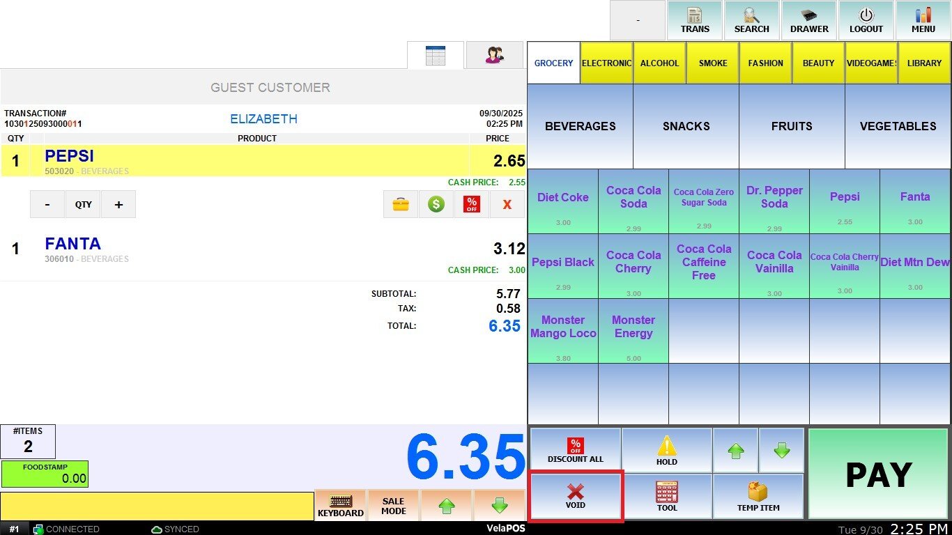 The Void function allows to cancel specific items or an entire order that was entered into the system by mistake. This helps maintain accurate transaction records and prevents incorrect charges.