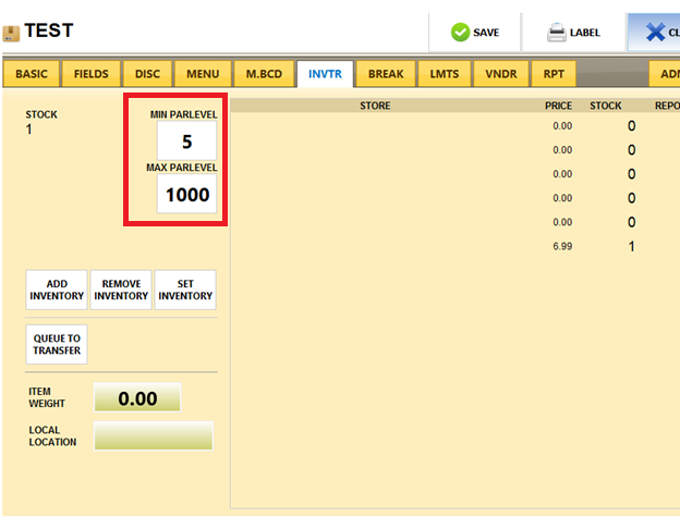 Click on MIN PARLEVEL and you'll get a number pad that you can change the mininmum parlevel