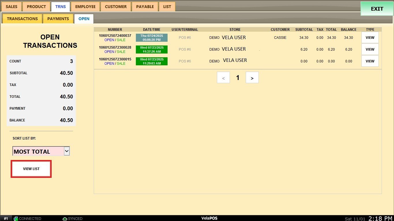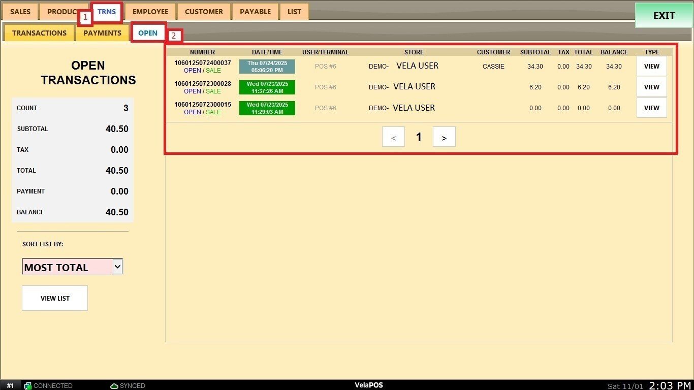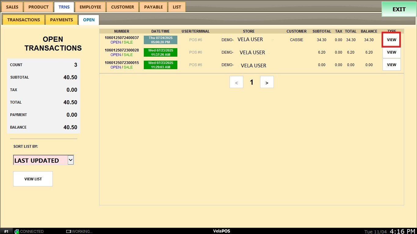 Click on VIEW to review the details of a specific open transaction directly from the report.