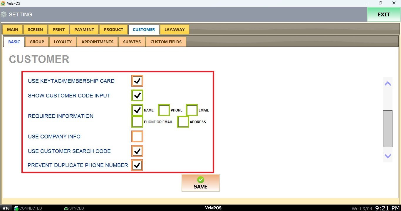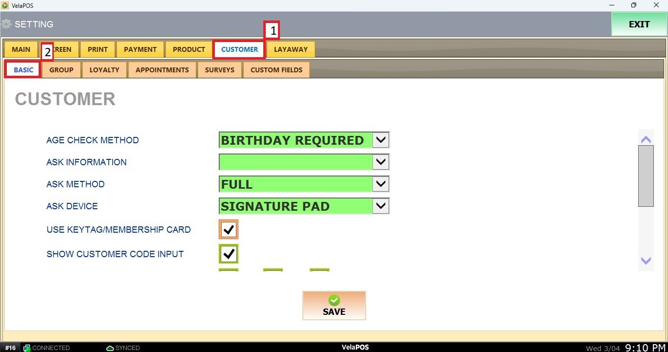 Go to the CUSTOMER tab, and click on BASIC.
