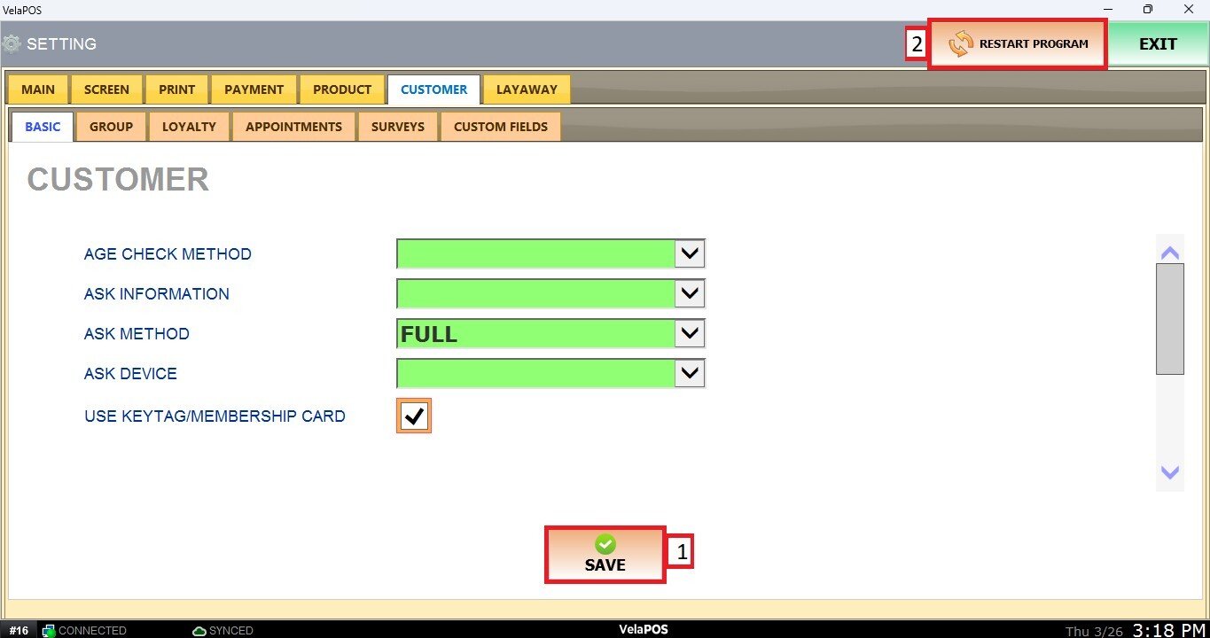 After changing any settings, make sure to click SAVE and then RESTART PROGRAM to apply the changes.