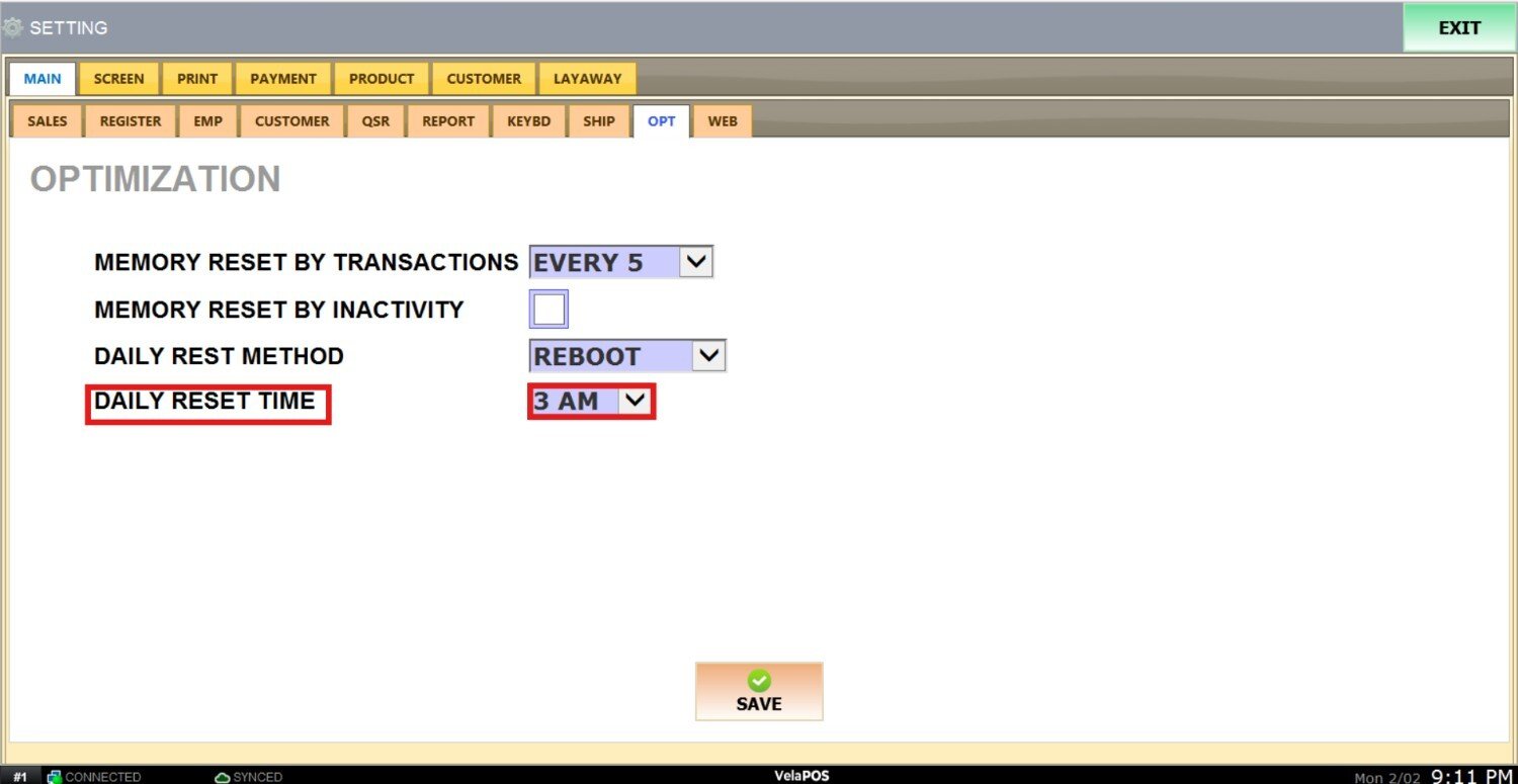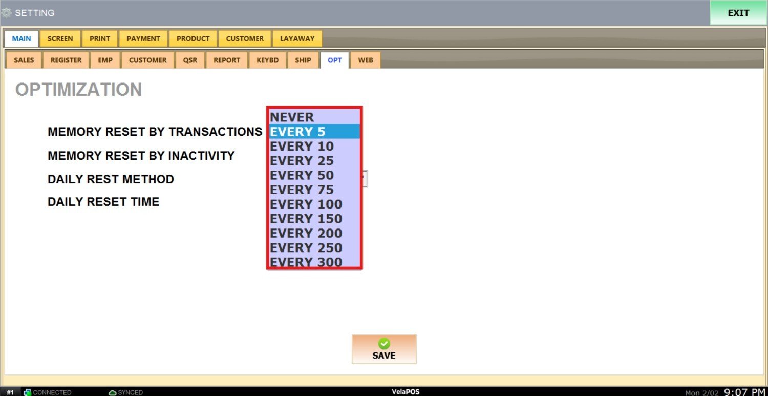These settings help keep the system running smoothly by clearing memory during idle time, after transactions, or via a scheduled daily reset.