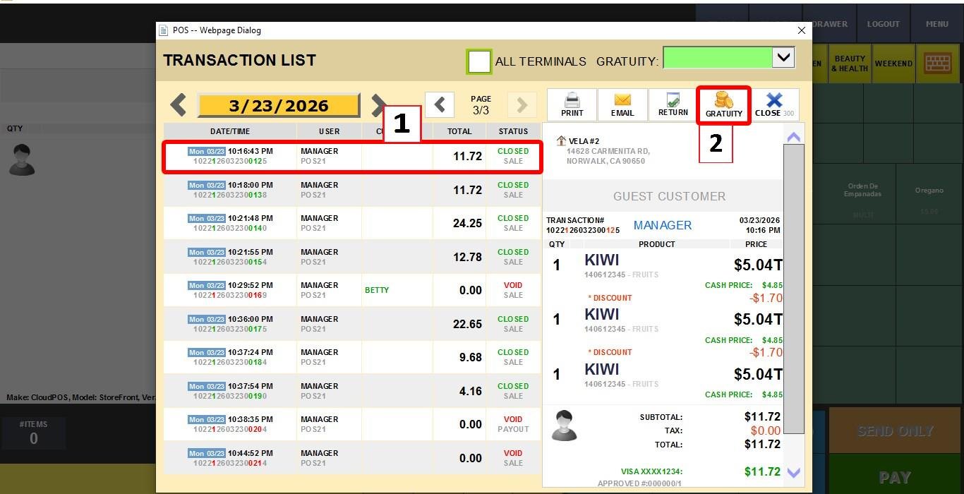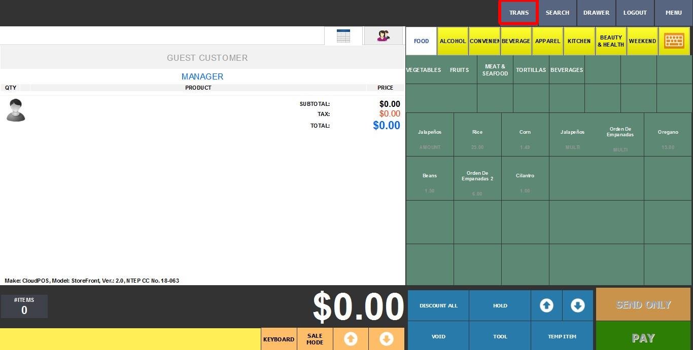To add gratuity to a transaction in the POS. Go to the Sales Screen, click on TRANS (Transactions)