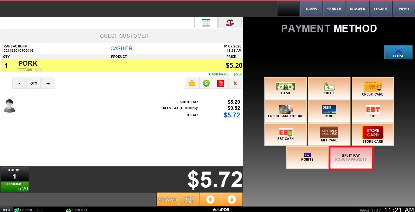 1. SHOW: Enables the split payment button.
