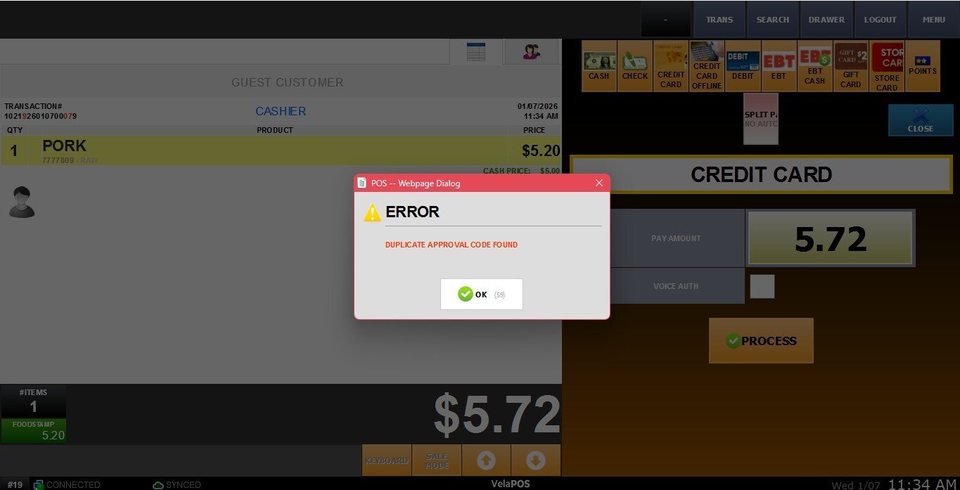 DUPLICATE APPROVAL CODE
