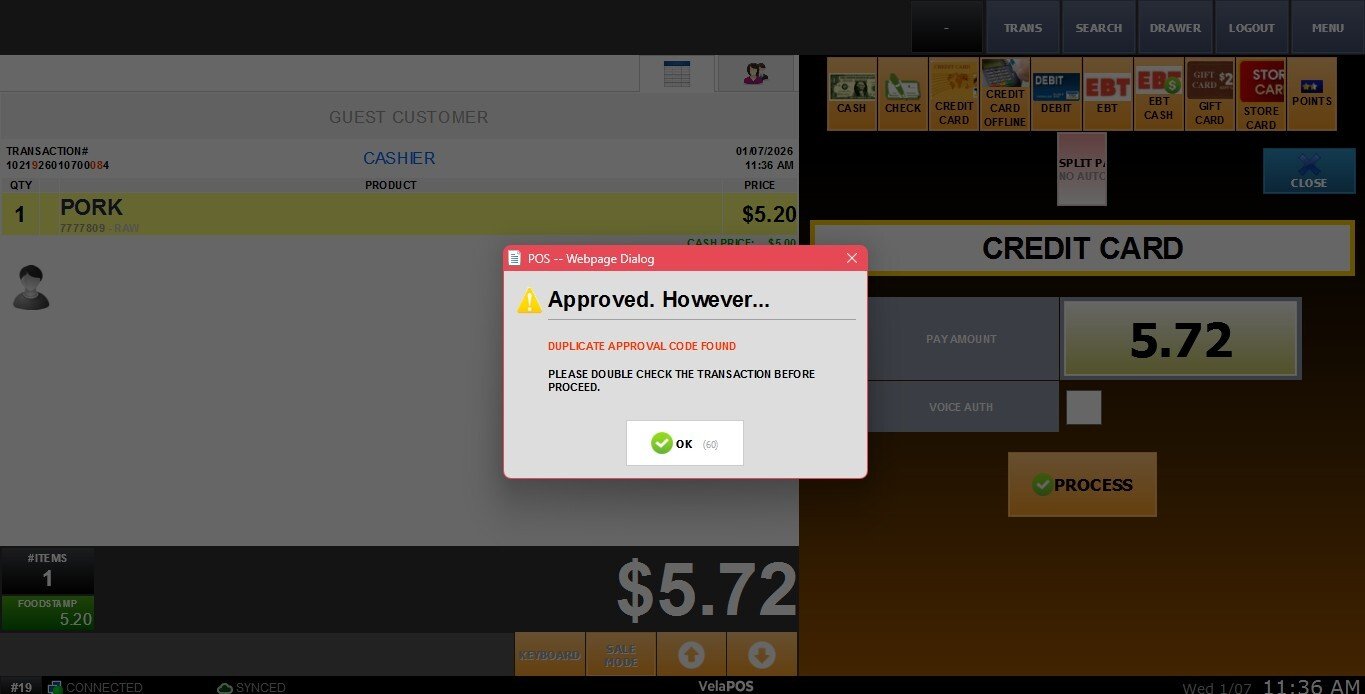 3. PASS: Transactions with a duplicated approval code are processed normally with no interruption.