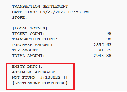2. TREAT AS APPROVED: If the batch is empty or not found, the settlement is treated as approved.
