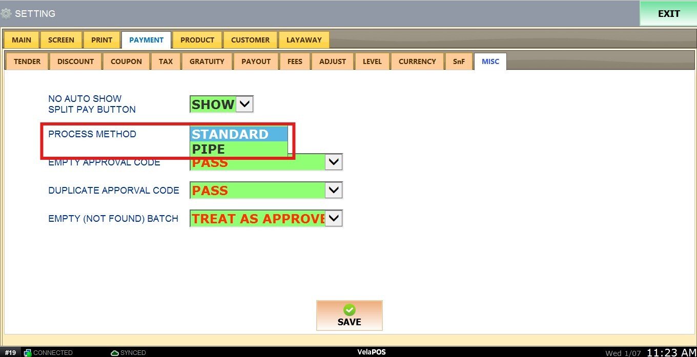 2. PIPE: A more flexible method. The POS splits the approval code using the pipe character (|) and validates only the relevant portion, ignoring any extra data. This option is designed for processors that return inconsistent or variable approval formats.