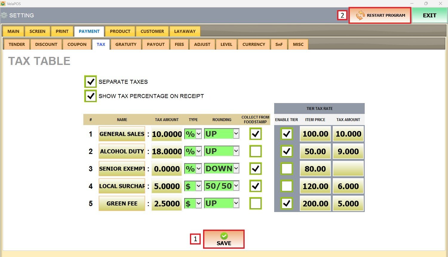 Check the box to activate the tiered tax rates.