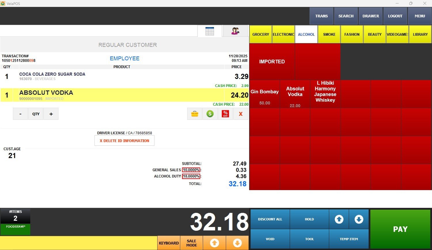 When an item’s price exceeds the configured threshold (for example, $100), the system automatically applies the additional tax rate (such as 10%) assigned to that tier.