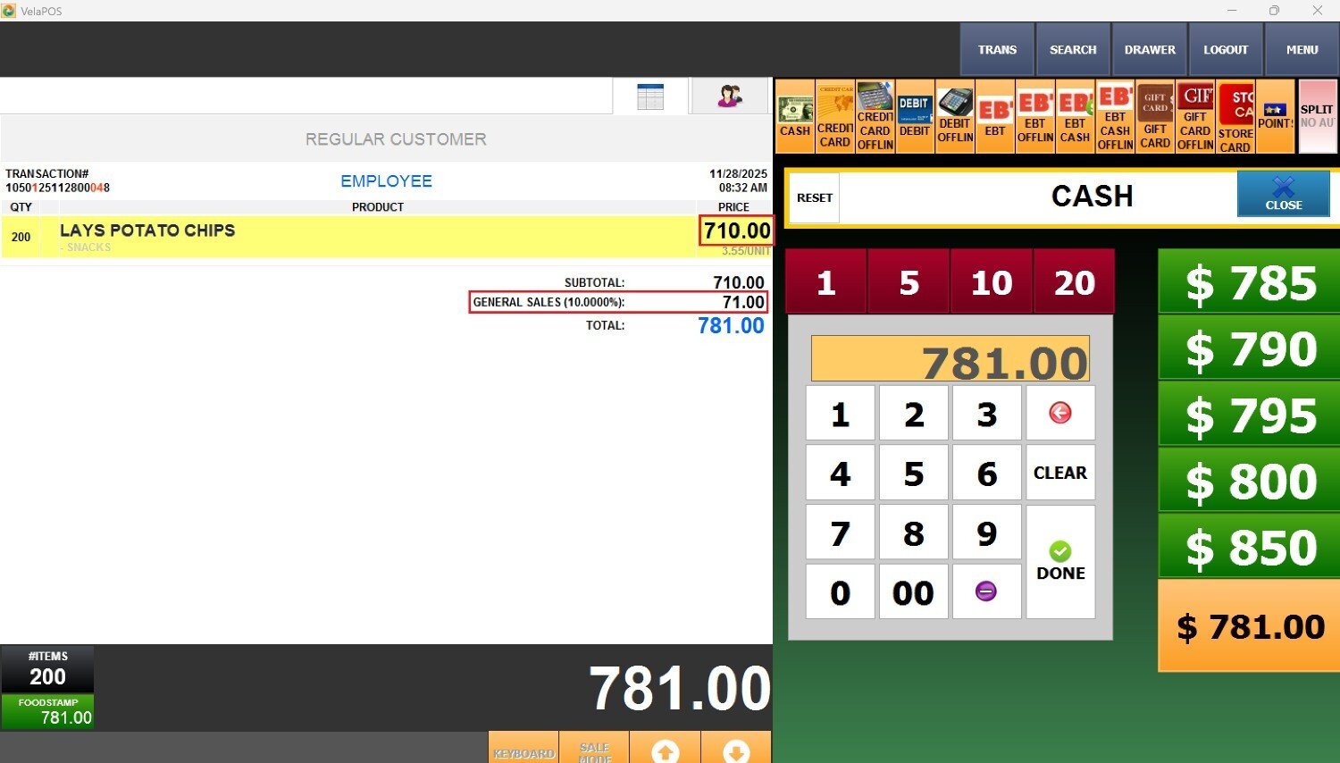 When the box is checked, Taxes are still collected on items purchased with EBT.