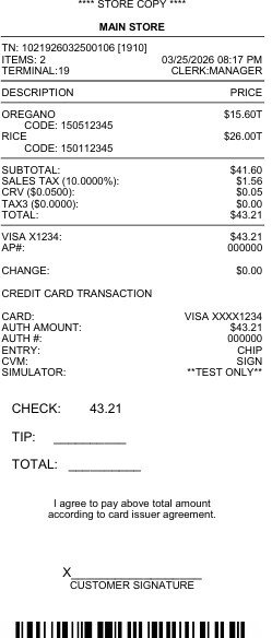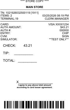2. SHORT: Prints a simplified signature slip with only essential transaction details.