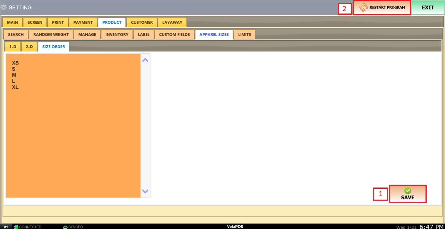 To apply the changes, press SAVE and RESTART PROGRAM.