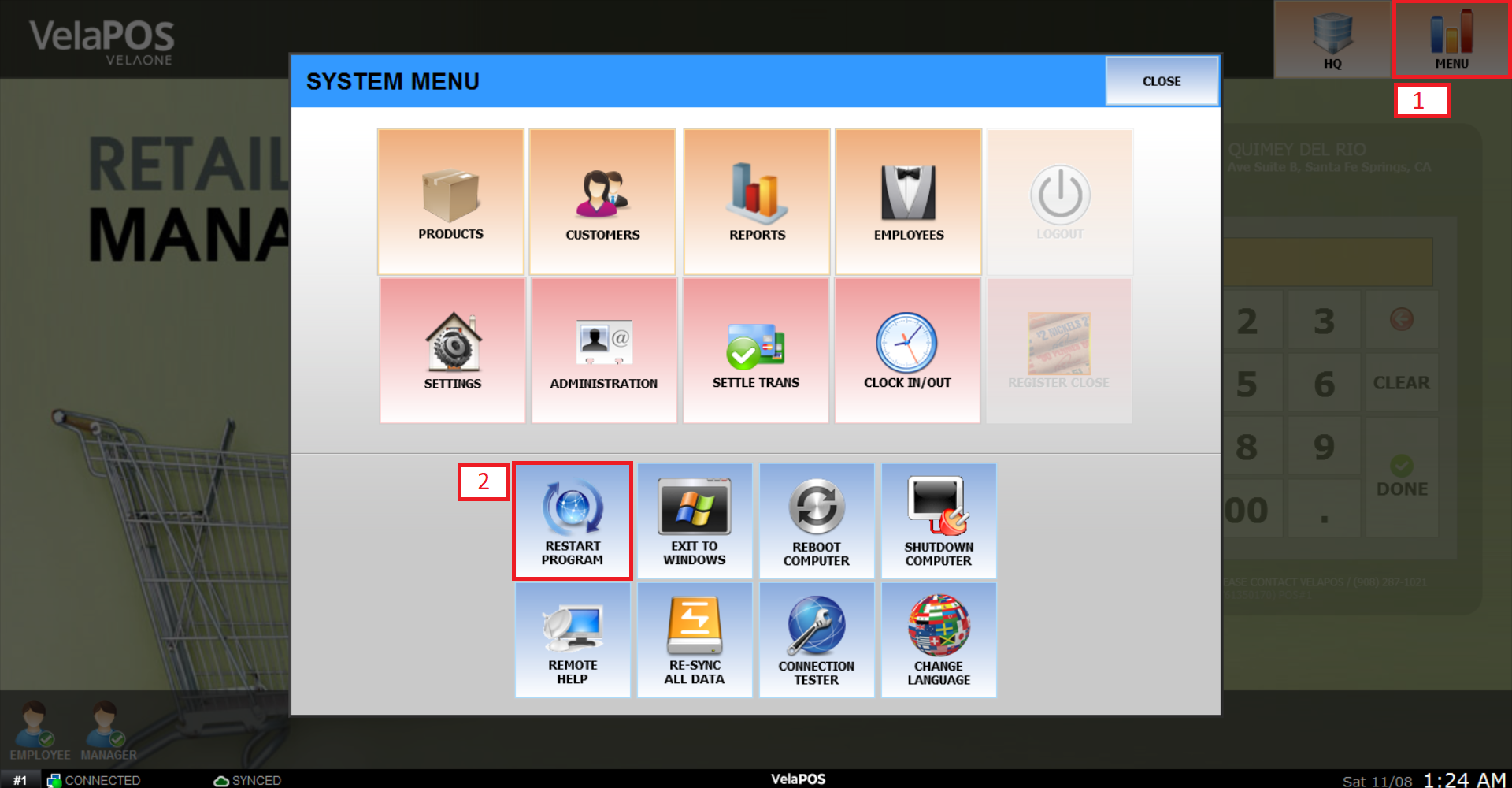 To apply the changes, go back to the main screen, go to MENU, and press RESTART PROGRAM.
