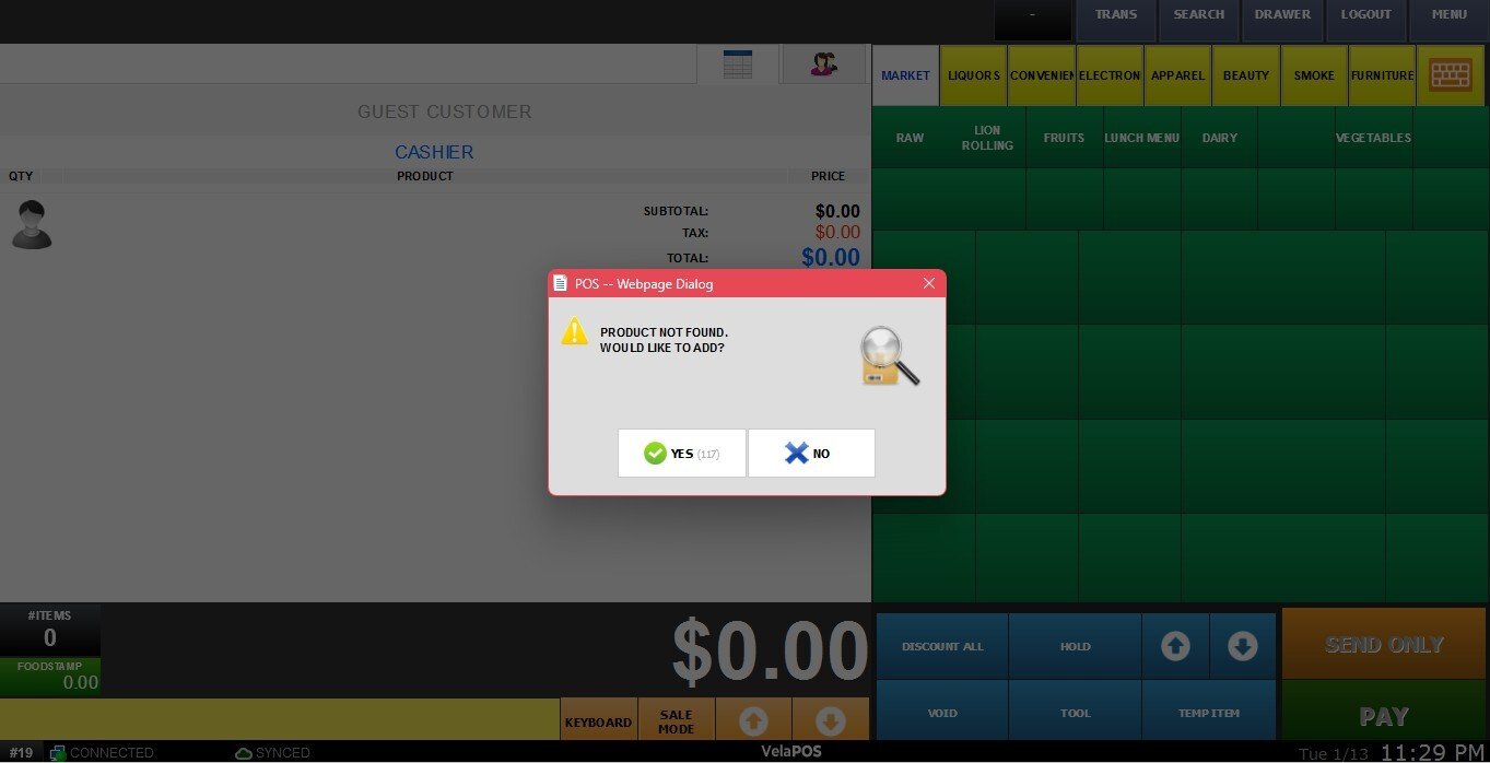3. PROMPT TO ADD: The system displays a prompt allowing the employee to add the product directly to the inventory.
