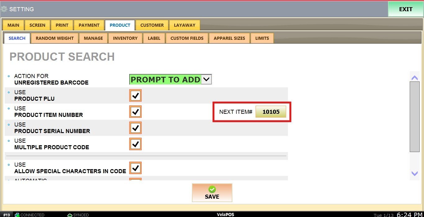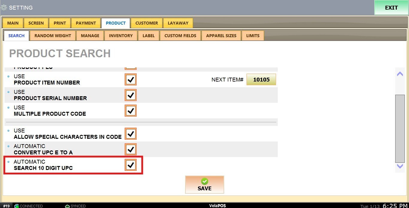 Allows VelaPOS to match products when only 10 digits of a UPC are entered or scanned.