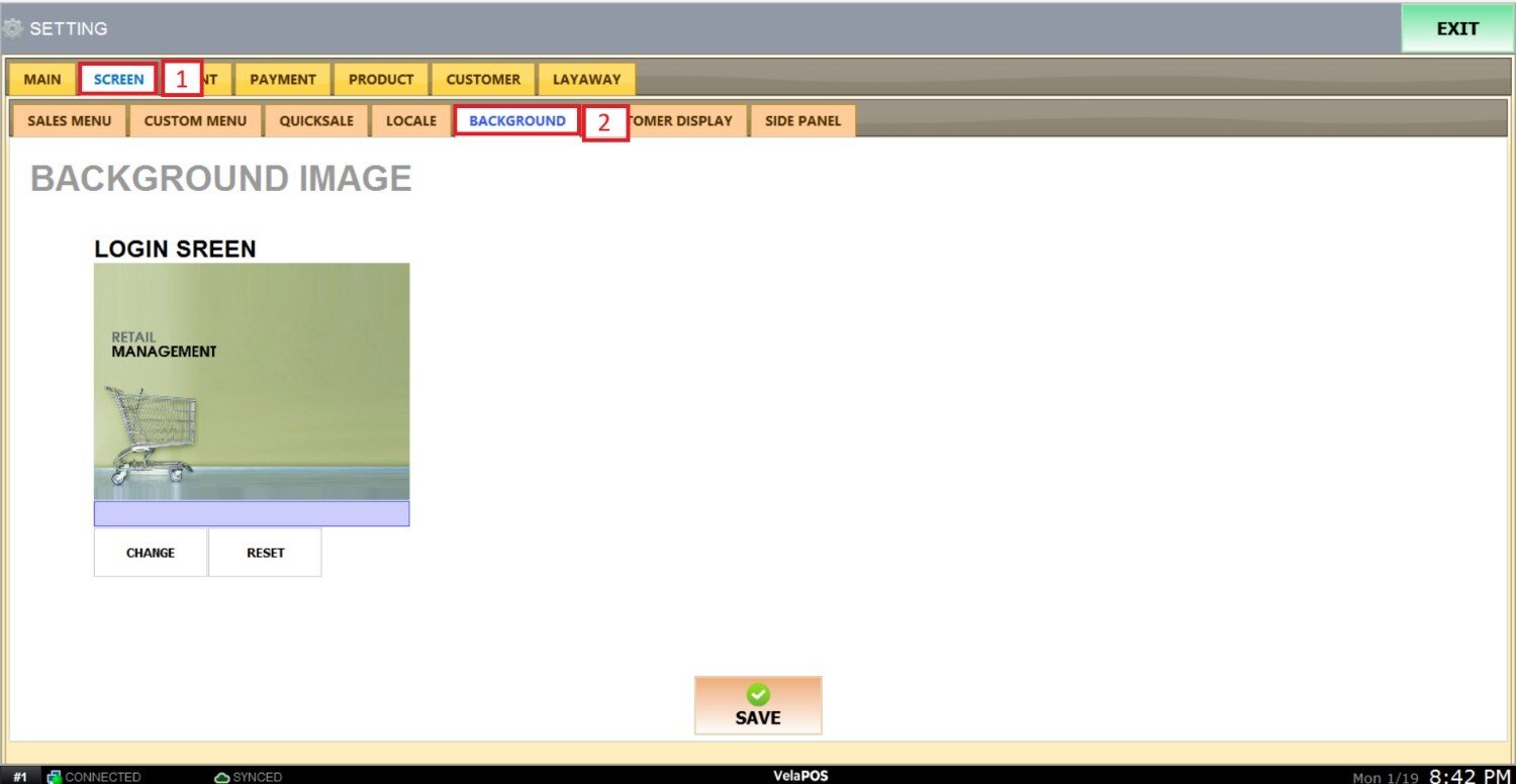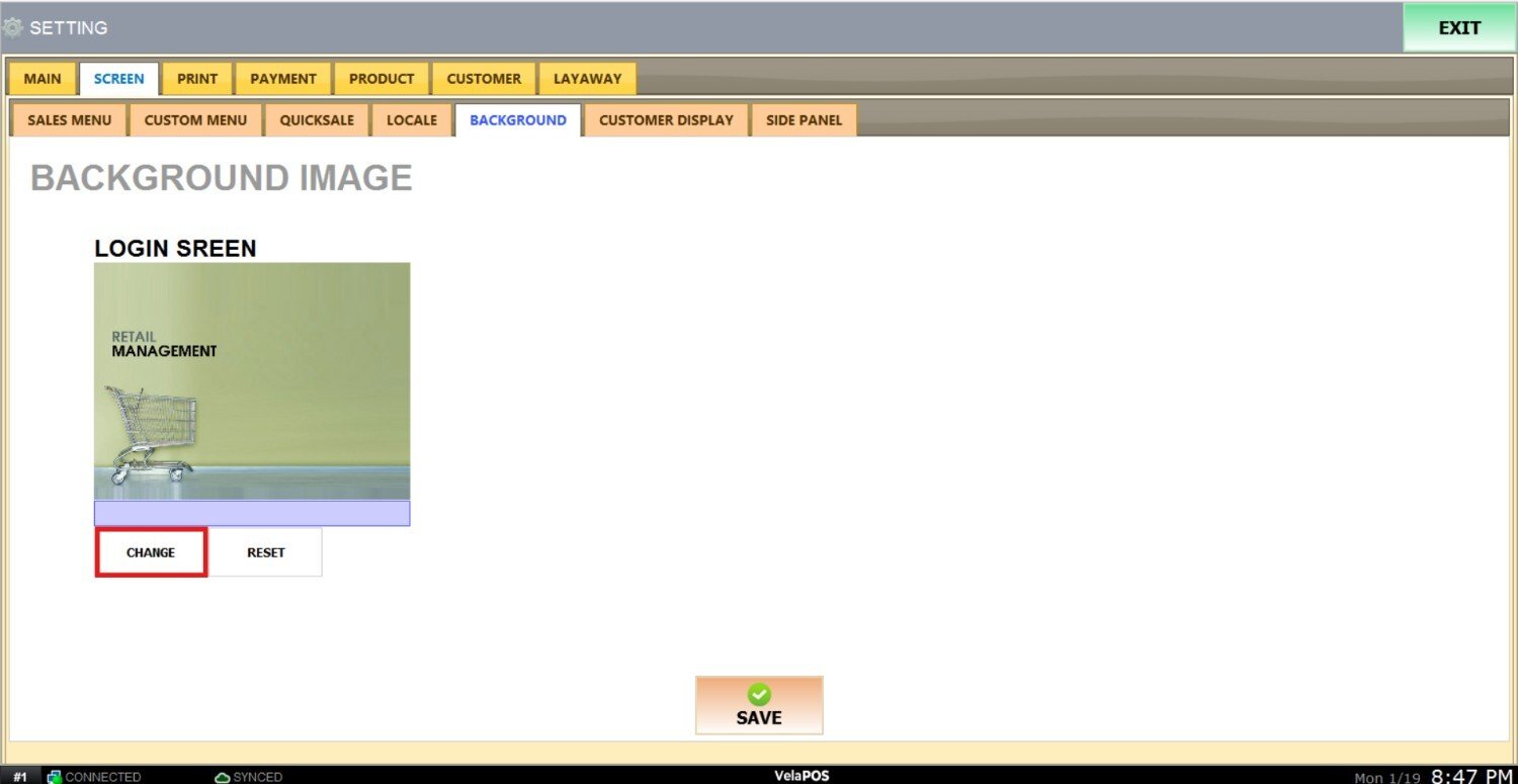 Main Screen> MENU> SETTINGS> SCREEN> BACKGROUND