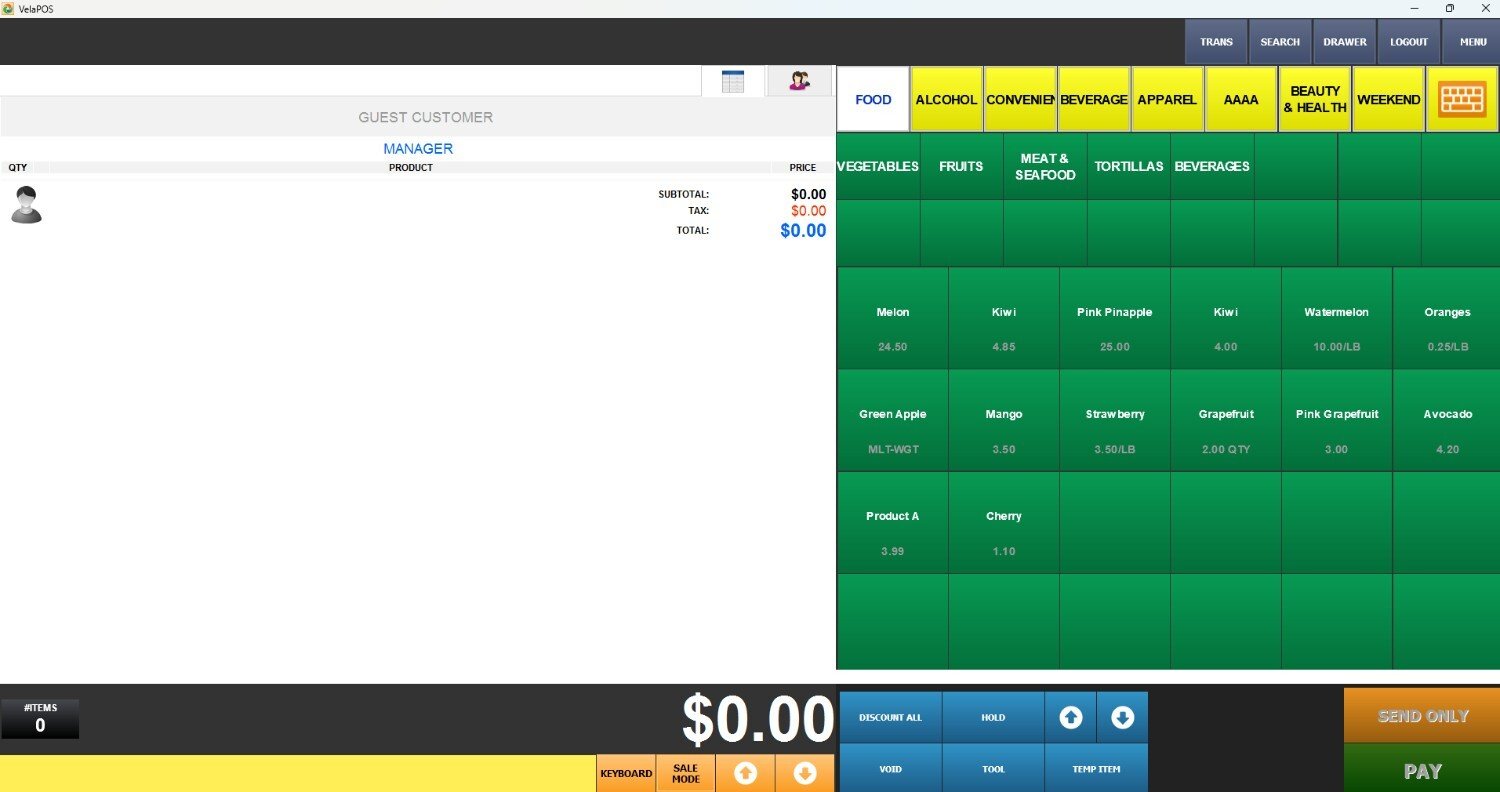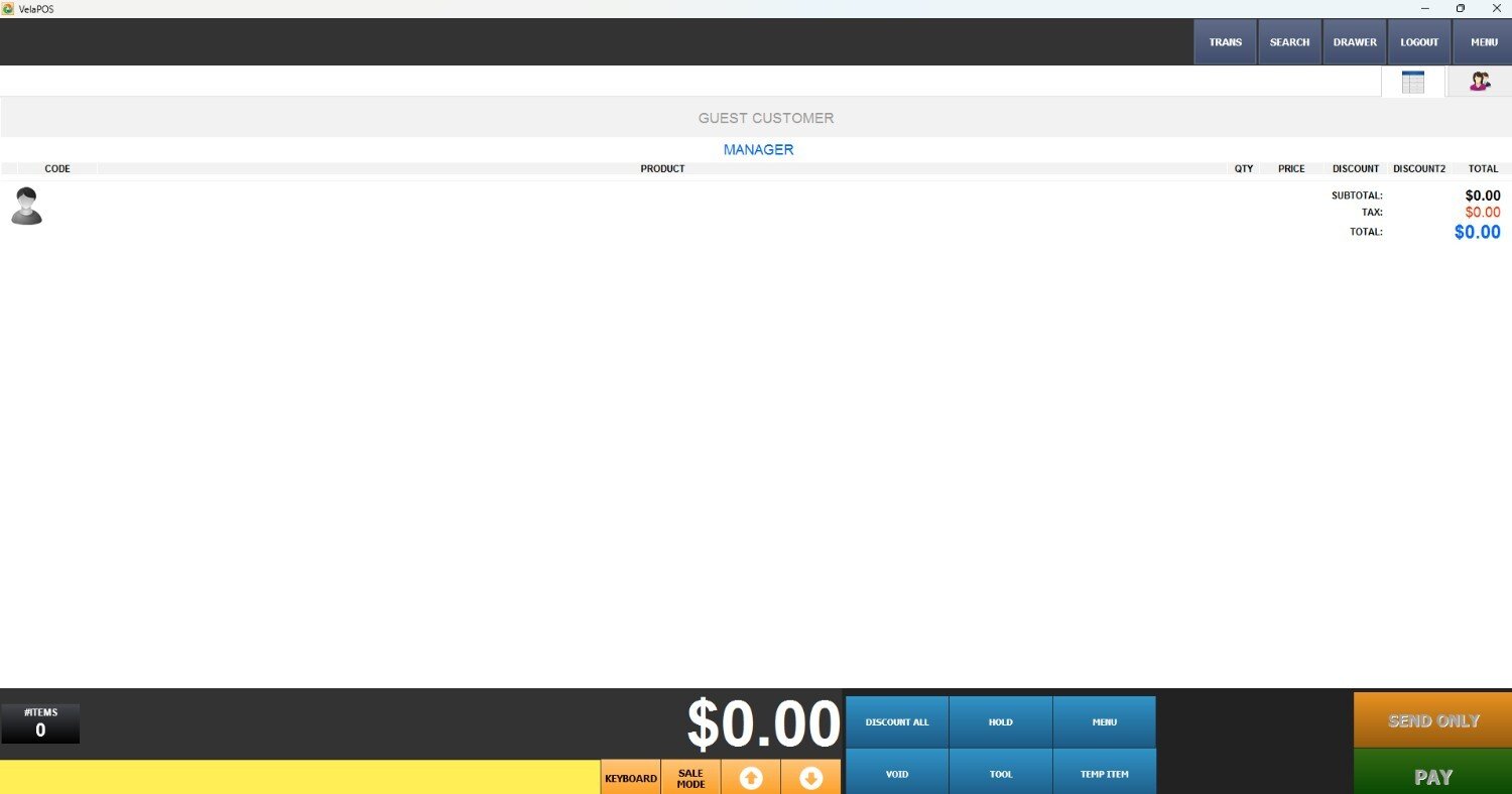 4. ON DEMAND: No menu is displayed on the sales screen. Items are typically added by scanning, and the keyboard remains available for manual entry when needed.