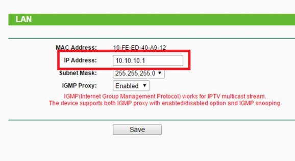 Once the IP address has been changed, it will ask you to reboot the router and you will have to login to the admin page with the new IP address: http://10.10.10.1
